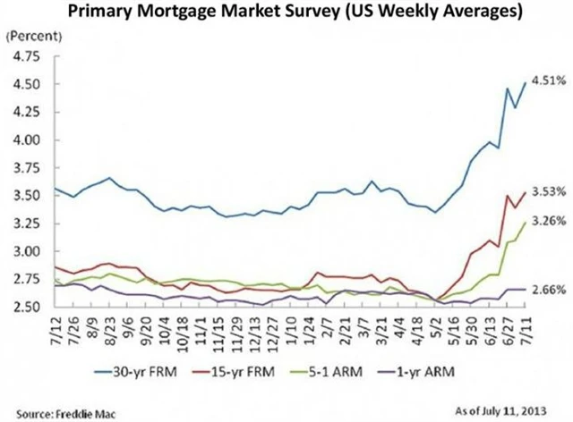 Spekulace o možném brzkém utlumení programu odkupů dluhopisů ze strany Fedu (QE) v uplynulých týdnech vyhnaly úroky amerických hypoték na dvouletá maxima. Pro nemovitostní trh, dosud považovaný za jeden z největších motorů amerického ekonomického oživení, to může mít neblahé důsledky.
