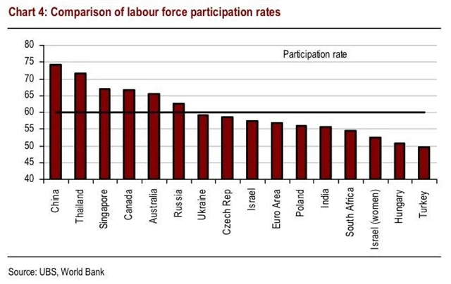 Zaměstnanost je nejvyšší v zemích jako Čína, Kanada nebo Austrálie. V grafu chybějí USA, kde se tento ukazatel pohybuje okolo 63,5 %. Česká republika ale ze srovnání nevychází špatně - je na tom lépe než Polsko, Maďarsko i v regionu investory donedávna "milované" Turecko.