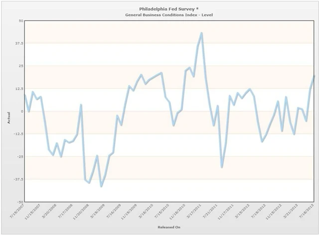 Index průmyslové aktivity filadelfského Fedu v červenci nečekaně vyskočil na +19,8 bodu (červen: +12,5 bodu, odhad: +8 bodů). Index nových zakázek klesl na 10,2 bodu z 16,6 bodu v předchozím měsíci a zaměstnanost poskočila na +7,7 bodu z -5,4 bodu.