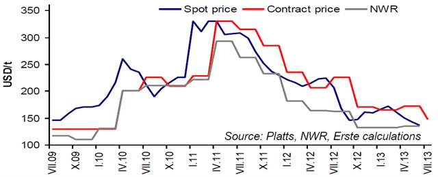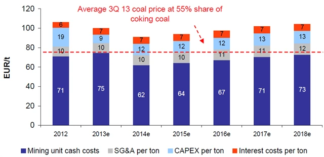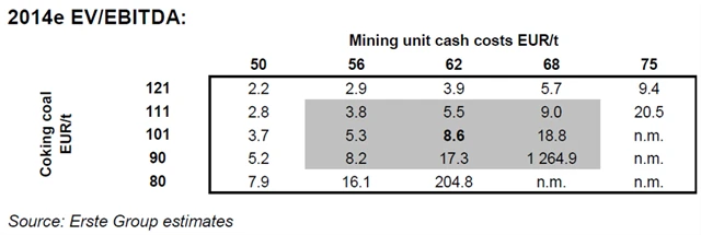 NWR by měla být schopna splnit svůj cíl poklesu jednotkových nákladů na tunu ze 71 eur na 60 eur. To bude umožněno plánovaným uzavřením vysokonákladového dolu Paskov a jeho dopadem na postoj odborů k navrženému snížení mezd. Na druhou stranu ale Erste nečeká výrazné zlepšení podílu koksovatelného uhlí v produkčním mixu NWR.