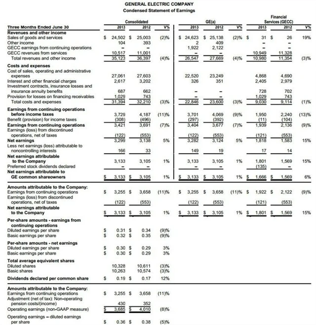 Výsledky General Electric ve 2Q2013: Zisk na akcii 36 centů (odhad: 35 centů), tržby 35,12 miliardy USD (odhad: 35,56 miliardy USD)