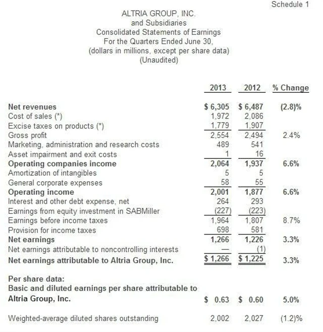 Výsledky Altria ve 2Q: Zisk na akcii 0,62 USD (odhad: 0,63 USD), tržby: 4,5 miliardy USD (odhad: 4,62 miliardy USD) Redakce IW23. 7. 2013 | 13:05Výsledková sezónaZdroj: BloombergVýsledková sezónaRedakce IW Další články autoraAkciový býk pádí vyspělými trhy. A není to jen americké témaTOP 10 článků týdne: Vize Nvidie, americké akcie a víra ve zlatoOčekávané výsledky světových firem v týdnu od 3. listopadu: McDonald’s, Palantir, Ryanair, BMW DoporučujemeNestihli jste naskočit do zlaté rally? Vůbec není pozdě, říká stratégZlatoRychlé peníze ve velkém opustily zlato a stříbro. Trh se připravuje na další růstZlatoAuto jako služba: Operativní leasing stále více láká domácnostiFinanční sektor Aktualitydnes | 18:00Evropské akciové indexy týden zahájily nejednotně, dařilo se cenným papírům automobilekdnes | 16:45Pražská burza v pondělí zpevnila, index PX je na novém maximudnes | 16:41Česko kvůli padělkům každý rok přichází o 13,7 miliardy korundnes | 16:16Americký výrobní sektor klesá rychleji, než se předpokládalodnes | 15:51Akcie společnosti Nvidia stouply o 3 %, poté co USA schválily prodej čipů do Spojených arabských emirátůdnes | 15:29Americké akcie v úvodu: Dow +0,06 %, S&P 500 +0,50 %, Nasdaq Composite +1,02 %dnes | 15:01Rusko se po setkání Trumpa a Si Ťin-pchinga pokouší znovu uplatnit své nároky vůči Čínědnes | 14:41OpenAI podepsala s Amazonem smlouvu v hodnotě 38 miliard dolarůdnes | 14:19Kimberly-Clark koupí firmu Kenvue za 48,7 miliardy dolarůdnes | 14:04Pětina Čechů plánuje během Black Friday utratit přes 10 tisíc korundnes | 13:48Futures na americké akcie: Dow -0,01 %, S&P 500 +0,30 %, Nasdaq 100 +0,61 %dnes | 13:21Švýcarská inflace klesla na čtyřměsíční minimumZobrazit všechny aktuality Nejčtenější tento týden1.Nestihli jste naskočit do zlaté rally? Vůbec není pozdě, říká stratég2.Rychlé peníze ve velkém opustily zlato a stříbro. Trh se připravuje na další růst3.Auto jako služba: Operativní leasing stále více láká domácnosti4.Čtyři důvody, proč po korekci nakupovat akcie evropských zbrojovek5.Modlitba pasivního investora a jak podle expertů (ne)investovat v celní bouři6.Buffettův odkaz: Trpělivost jako klíč k investičnímu úspěchu Sledujte násinvesticniweb.cz14000Investiční web19300LIVE2300Investiční web1000investicni_web500Investicniweb.cz33600