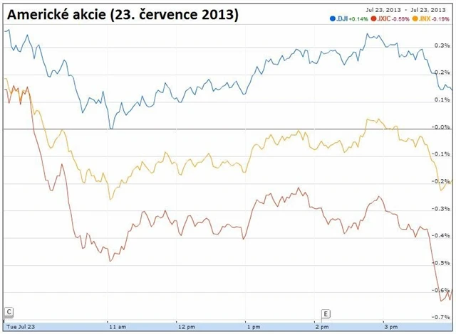 Americké akcie zahájily úterní obchodování úspěšně. Během několika prvních minut indexy S&P 500 i Dow překonaly své intradenní rekordy a Dow se poprvé v historii přehoupl přes 15 600 bodů. Postupně však i vlivem nepříznivé zprávy z richmondského Fedu začaly akcie zisky odevzdávat a indexy obchodování uzavřely smíšeně.