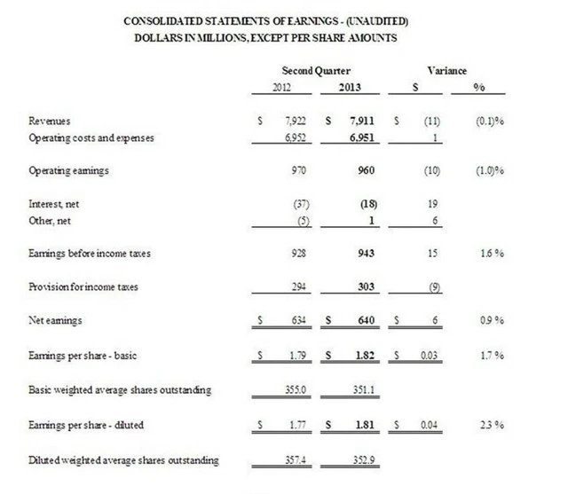 Zisk společnosti General Dynamics na akcii ve druhém čtvrtletí roku 2013 vzrostl meziročně o 2,3 %.