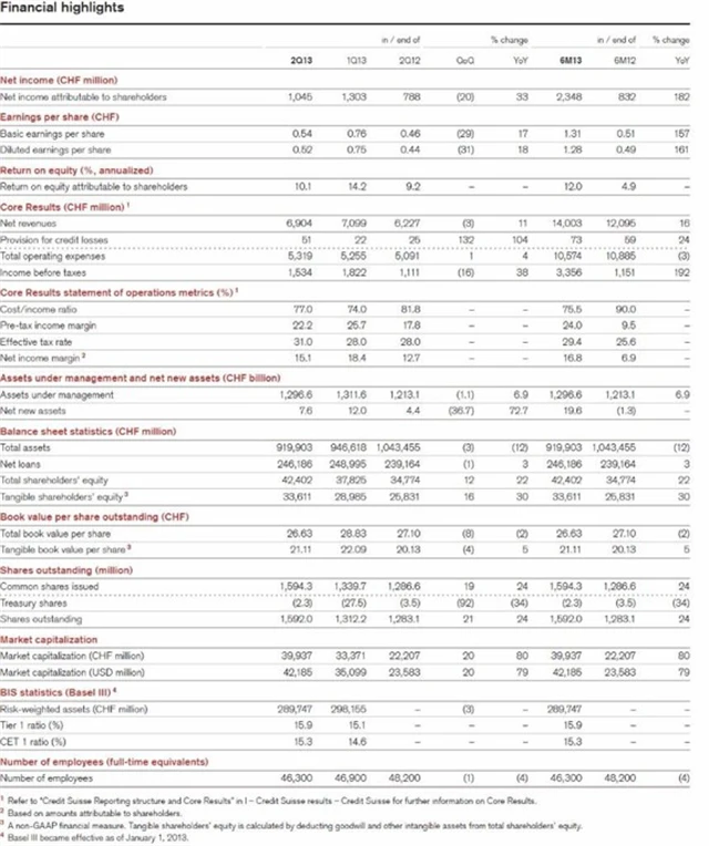 Vyšší zisk ovlivnily solidní příjmy z divize investičního bankovnictví a z obchodování s cennými papíry, ale také snižování nákladů. Credit Suisse je po UBS druhou největší bankou ve Švýcarsku.