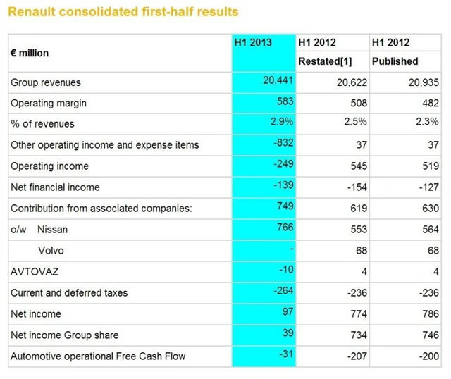 Výsledky Renault 1H 2013: Provozní marže 583 milionů EUR (odhad 397 milionů EUR)