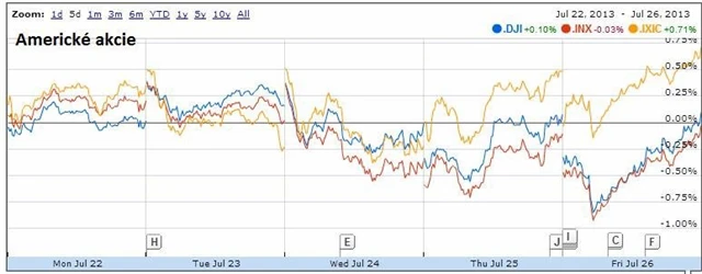 V týdnu index S&P 500 nakonec ztratil téměř neznatelná 0,03 %. Dow se udržel jen těsně na nule a Nasdaq zpevnil o 0,71 %.
