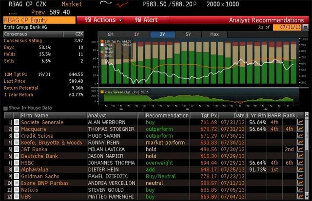 Kompletní přehled aktuálních investičních doporučení na akcie Erste Group Bank, jak je k středečnímu ránu sesbírala agentura Bloomberg: