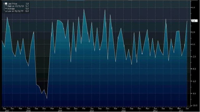 Červnový růst byl 3,8 % meziměsíčně. To je vysoko nad očekáváním 1,0 %. Meziročně rostly objednávky v německém průmyslu o 4,3 % při očekávání 0,3 %.