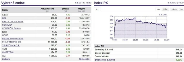 Pražská burza v úterý posilovala. Index PX připsal 0,20 %.