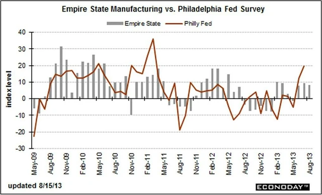 Empire State index aktivity newyorského Fedu v srpnu klesl na 8,24 bodu z červencových 9,46 bodu. analytici čekali zlepšení na 10 bodů. Subindex nových zakázek spadl na 0,27 bodu z 3,77 bodu, zásoby se naopak zvedly na -3,61 bodu z -6,52 bodu.