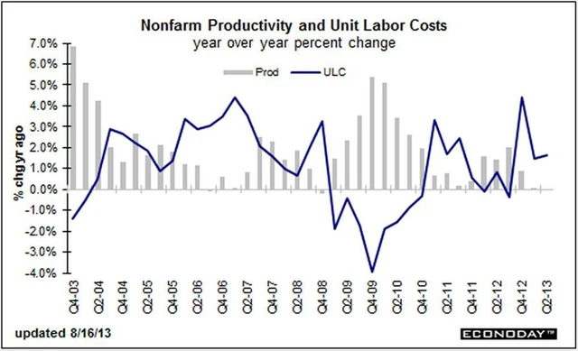 Náklady na pracovní sílu vzrostly o 1,4 %. Čekal se růst produktivity o 0,6 % a nákladů o 1 %.