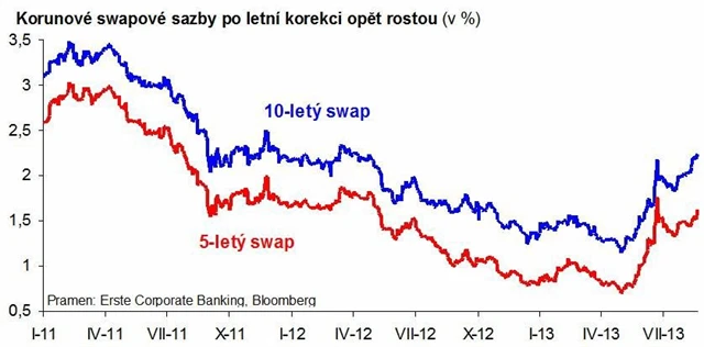 Swapové sazby jsou stále velice nízko, i když ne tak super-nízko jako na historických minimech na jaře. Stále se dá hodně ušetřit na úrokových nákladech, až porostou i krátké úrokové sazby. Korekce současného růstu sazeb je možná. Hlubší korekce je však méně pravděpodobná než na začátku prázdnin.