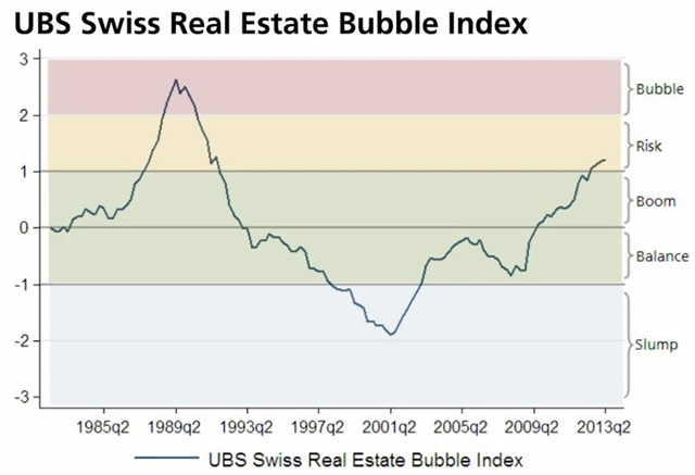 Robert Weinert, analytik ze společnosti Wüest & Partner, současně naznačuje, že za poklesem cen nemusí stát jen samotná hrozba vyššího zdanění cizinců. "V Curychu a Ženevě se ceny některých nemovitostí vyšplhaly na nerealistické úrovně. Domy jsou tak drahé, že si je většina lidí nemůže dovolit," vysvětluje. Rostoucí riziko vzniku obří bubliny, podobné té, která ve Švýcarsku praskla na přelomu 80. a 90. let, dokládá i národní index realitní bubliny, který nedávno vstoupil do pásma rizika.