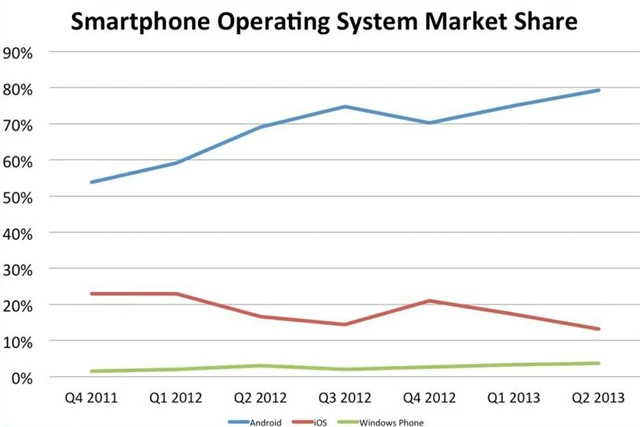 Podíl operačního systému Windows Phone roste, ale v uctivé vzdálenosti za iOS a Androidem