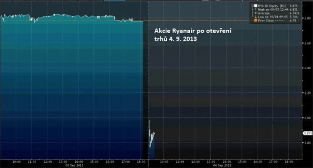 Čistý zisk firmy tak podle prohlášení bude na spodní hranici odhadovaného pásma 570 až 600 mil. EUR. "Pokud bude tlak na ceny letenek pokračovat, bude zisk lehce pod dolní hranicí tohoto pásma," stojí v nečekaném prohlášení Ryanair.
