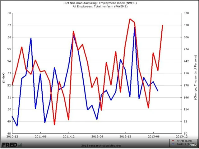 Hlavní ekonom Deutsche Bank Joe LaVorgna očekával přírůstek nových pracovních míst o 190 tisíc a pokles celkové míry nezaměstnanosti na 7,3 %. Analytici z Goldman Sachs byli optimističtější a předvídali, že ekonomika vytvořila 200 tisíc nových pracovních míst, zatímco míra nezaměstnanosti měla podle nich stagnovat na 7,4 %. Drew Matus, ekonom z UBS, po zveřejnění ISM v sektoru služeb upravil svůj předchozí odhad ze 170 tisíc na 210 tisíc. Stejně jako analytici z Goldman Sachs očekával, že míra nezaměstnanosti zůstane beze změny na 7,4 %. Největší býci však pracují v Société Générale - Brian Jones ze Société Générale čekal, že číslo přeskočí konsenzus trhu o 40 tisíc a vyskočí na 220 tisíc.