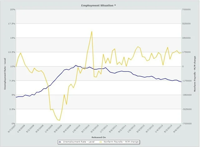 V USA v srpnu vzniklo 169 tisíc nových pracovních míst mimo zemědělský sektor, soukromý sektor zaměstnal o 152 tisíc lidí více. U obou se čekal nárůst 180 tisíc. Výrazně níže byla revidována také data o nových pracovních místech za červenec. Celková míra nezaměstnanosti však klesla na 7,3 % z 7,4 %, což je nejméně od prosince 2008. Jde o poslední údaje o trhu práce před zářijovým zasedáním Fedu. Centrální banka může s omezením QE v září váhat.
