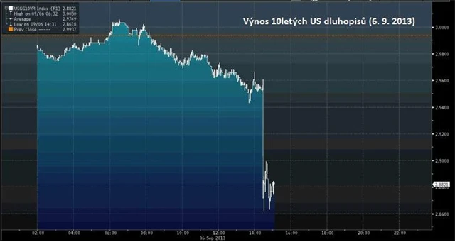 Ve čtvrtek se výnos desetiletých bondů dostal těsně pod 3 % (2,99 %), nejvýše od července 2011. Výnos 5letých dluhopisů vzrostl na 1,85 % a 30letých bondů na 3,89 %. Aktuálně výnosy kolísají - výnos pětiletých dluhopisů klesl zpět na 1,807 % a třicetiletých na 3,868 %. Výnos desetiletých dluhopisů poté, co v pátek ráno dosáhl 3,007 %, spadl na 2,957 %.