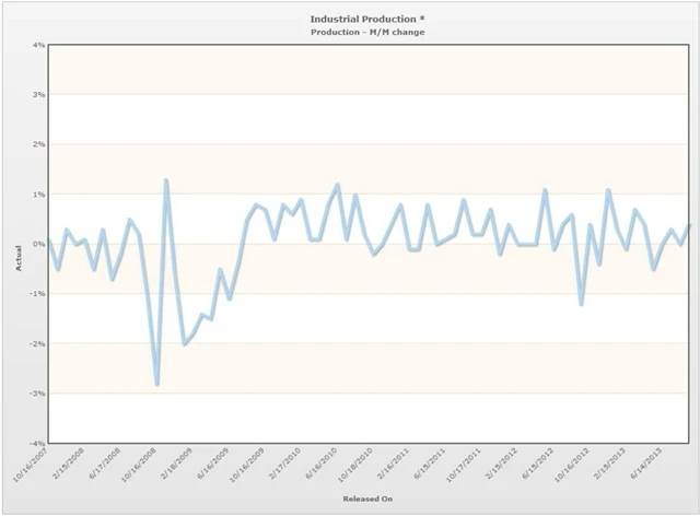 Průmyslová výroba ve Spojených státech v srpnu vzrostla o 0,4 %, analytici čekali růst o 0,5 %. Využití kapacit zůstalo na červencových 77,8 % (revidováno z 77,6 %), přestože se čekal růst na 77,9 %.