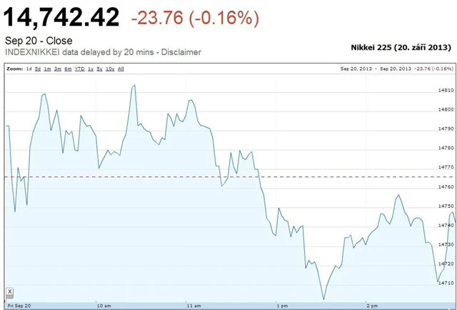 Japonský Nikkei v průběhu obchodování zisky odevzdal a zakončil se ztrátou 0,16 %. Za celý týden (od úterý do pátku, protože v pondělí se v Japonsku neobchodovalo) však posílil o více než dvě procenta. Australský S&P/ASX 200 odepsal 0,36 %, za celý týden vzrostl o více než procento. Burzy v Číně, Hong Kongu i Jižní Koreji zůstaly v pátek zavřené.