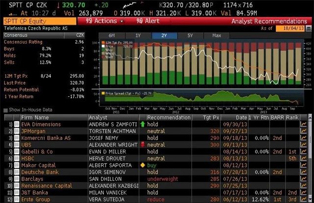 Komerční banka snižuje investiční doporučení na akcie Telefóniky C.R. na "prodávat" z "držet"