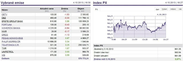 Index PX v pátek připsal 0,07 % na 961,99 bodu.