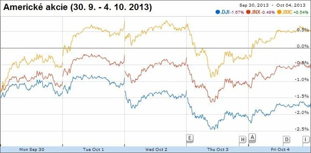 Investoři se nadále obávají, že politici spory o podobu rozpočtu v brzké době nevyřeší. Zvyšuje se tak riziko, že se nebudou schopni dohodnout ani na mnohem důležitější otázce zvýšení dluhového stropu. Americká vláda nemá kvůli sporům v Kongresu již čtyři dny peníze na běžný provoz. Reálné dopady na ekonomiku to zatím nemá, analytici se však obávají, že v případě prodlužování této patové situace by to mohlo snižovat spotřební výdaje.