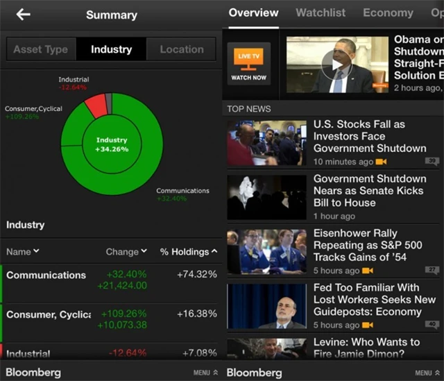 S příchodem iOS 7 Bloomberg ucítil příležitost zlepšit už tak výborný produkt. Oke Okaro, ředitel firmy pro mobilní zařízení, chtěl posunout firmu opět o krok před konkurenci. Nově je ještě větší důraz kladen na video, v mobilním segmentu stále oblíbenější, a data a aktualizace v reálném čase. Uživatelé si také mohou přizpůsobovat a sledovat konkrétní data, nastavení se jim propisuje i do počítače nebo tabletu.