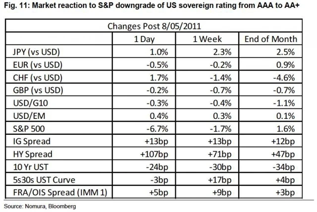Jak reagovaly trhy na poslední opravdu vyhrocenou debatu o dluhovém stropu v USA? Analytici z Nomury v aktuální zprávě připomínají, jak rychlé a hluboké mohou být ztráty, pokud Amerika na strop opravdu narazí.