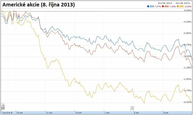 "Situace začíná být opravdu napjatá a lze jen těžko odhadovat, jak spor mezi demokraty a republikány dopadne," říká Paul Zemsky ze společnosti ING U.S. Investment Management. "Investoři navíc přestávají věřit, že k vyřešení současného shutdownu dojde v nejbližších dnech, a začínají se proto připravovat i na možnost výrazného zpomalení tempa růstu americké ekonomiky," doplňuje.