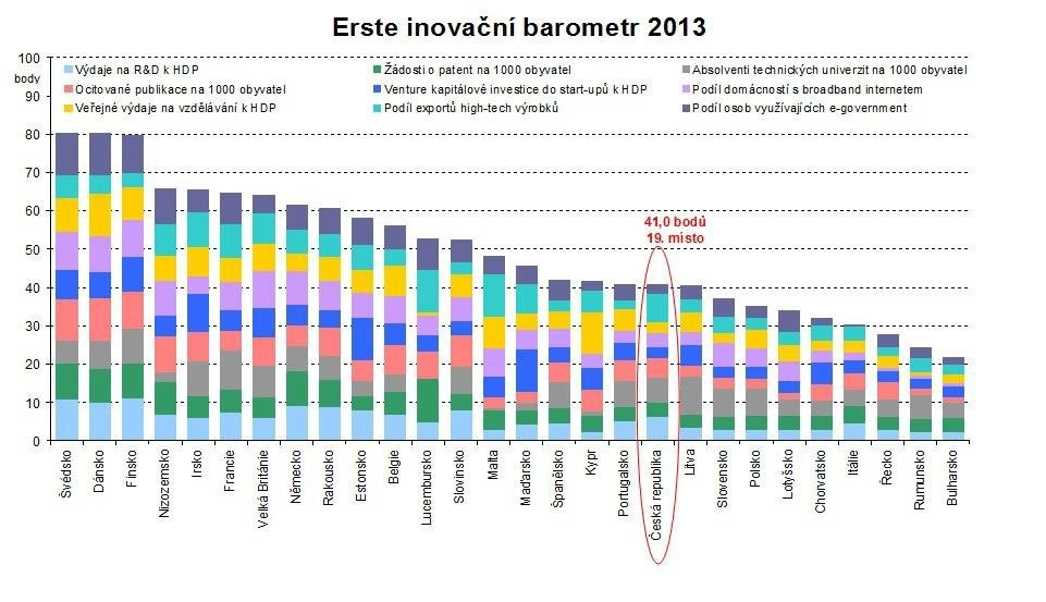 Česko se umístilo například za Slovinskem, Maďarskem nebo Španělskem. Nejhůře je na tom ve veřejných výdajích na vzdělávání nebo v rozšíření e-governmentu. Naopak si nevede špatně v podílu high-tech vývozů na celkových exportech a také v počtu absolventů technických univerzit.