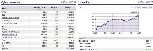 Index PX ve čtvrtek posílil o 0,47 % na 965,98 bodu. I přes masivní ztráty Telefóniky C.R. ho nahoru vytáhly bankovní tituly.