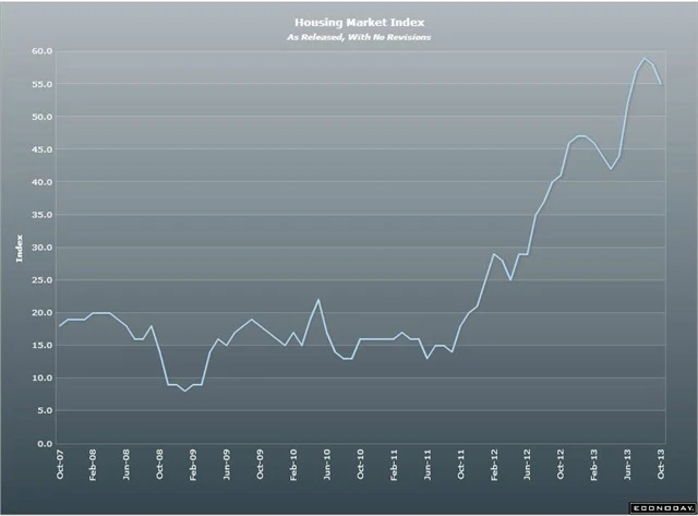 Americký index trhu s bydlením NAHB v říjnu spadl na 55 bodů (září revidováno na 57 z 58 bodů)