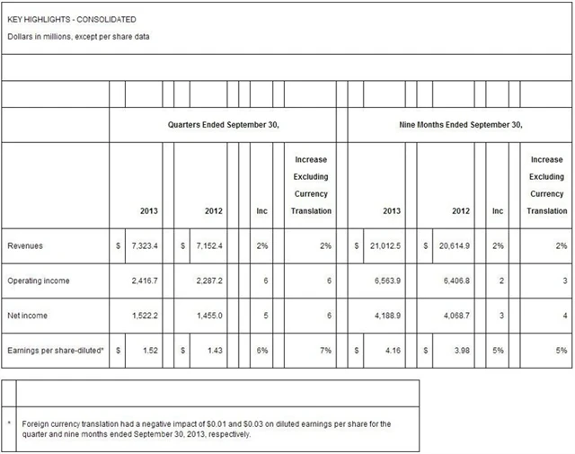 Výsledky McDonald's ve 3Q2013: Zisk na akcii 1,52 USD (odhad: 1,51 USD), tržby: 7,32 miliardy dolarů (odhad: 7,336 miliardy USD)