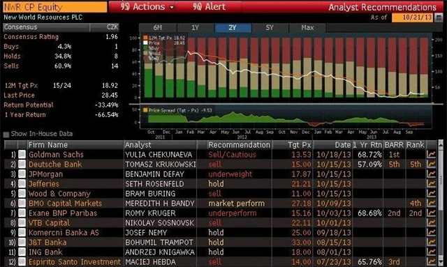Analytici Goldman Sachs sice mírně navýšili cílovou cenu akcií NWR z 12,85 na 13,53 Kč za akcii, přesto stále čekají propad cen akcií o polovinu. Jejich doporučení zní "prodat".