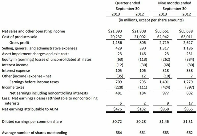 Výsledky Archer Daniels Midland ve 3Q2013: Očištěný zisk na akcii 0,46 USD (odhad: 0,48 USD), tržby 21,393 miliardy USD (20,362 miliardy USD) Redakce IW29. 10. 2013 | 12:30Výsledková sezónaZdroj: BloombergVýsledková sezónaRedakce IW Další články autoraJak vydělat na jednorožcích dříve, než se na ně vrhnou investoři na burzeAkciový býk pádí vyspělými trhy. A není to jen americké témaTOP 10 článků týdne: Vize Nvidie, americké akcie a víra ve zlato DoporučujemeNestihli jste naskočit do zlaté rally? Vůbec není pozdě, říká stratégZlatoRychlé peníze ve velkém opustily zlato a stříbro. Trh se připravuje na další růstZlatoPříští vláda shrábne makroekonomický jackpotČeská ekonomika Aktualitydnes | 4:50Refinancujete hypotéku? Nový odhad ceny nemovitosti vám může výrazně snížit splátkydnes | 0:00Co musíte dnes vědět (7. listopadu): Technická analýza ve službách dolaru6. 11. | 23:57Bilionovou odměnu Musk nakonec dostane, akcionáři Tesly ji schválili6. 11. | 22:30Wall Street ve čtvrtek potopily obavy z vysokých valuací akcií, sestup vedly technologické tituly6. 11. | 18:00Evropské akciové trhy ve čtvrtek klesly, hlavní indexy odepsaly do 1,5 %6. 11. | 16:57Čínský startup Moonshot podporovaný Alibabou uvádí novou verzi svého AI modelu Kimi6. 11. | 16:45Pražská burza ve čtvrtek zpevnila, index PX znovu posunul maximum6. 11. | 16:29Akcie Snapchatu zpevnily o 15 % díky partnerství s Perplexity AI6. 11. | 16:06Akcie Duolinga zlevnily o 27 % kvůli slabému výhledu a důrazu na růst uživatelů6. 11. | 15:41Cathie Wood snížila odhad ceny bitcoinu kvůli rostoucímu vlivu stablecoinů6. 11. | 15:14Disney uzavírá partnerství s DraftKings pro sportovní sázení na ESPN6. 11. | 14:51Cena bitcoinu po výprodeji může jít ještě nížZobrazit všechny aktuality Nejčtenější tento týden1.Nestihli jste naskočit do zlaté rally? Vůbec není pozdě, říká stratég2.Rychlé peníze ve velkém opustily zlato a stříbro. Trh se připravuje na další růst3.Příští vláda shrábne makroekonomický jackpot4.Dvě fakta o velkých akciových propadech, která vás možná překvapí5.Bank of America varuje: Americké akcie působí zdravě, ale trh uvnitř hnije6.Auto jako služba: Operativní leasing stále více láká domácnosti Sledujte násinvesticniweb.cz14000Investiční web19300LIVE2300Investiční web1000investicni_web500Investicniweb.cz33600