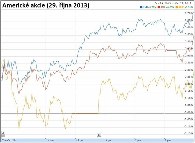 Americké akcie v úterý posilovaly navzdory nečekanému poklesu spotřebitelské důvěry i maloobchodních tržeb a index S&P 500 opět posunul svá maxima. Investoři aktuálně pozorně sledují dvoudenní zasedání měnového výboru americké centrální banky, které skončí ve středu. Očekává se, že Fed svůj stimulační program prozatím ponechá v platnosti a bude čekat na další statistické údaje, které by měly naznačit, jaký dopad na ekonomiku měla nedávná rozpočtová krize.