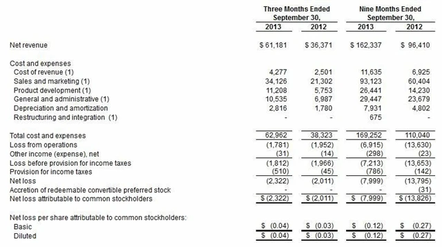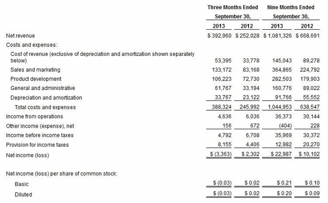 Recenzní sociální síť Yelp se ve třetím čtvrtletí dostala do ztráty 2,3 milionu USD neboli 0,04 USD na akcii (odhad: ztráta 0,01 USD na akcii, loni: ztráta 0,03 USD na akcii) při tržbách 61,2 milionu USD (odhad: 59,4 milionu USD, loni: 36,3 milionu USD). Pro čtvrté čtvrtletí společnost předpokládá tržby 66 až 67 milionů USD (odhad analytiků: 64,9 milionu USD). Akcie Yelp v after-marketu oslabovaly o 3,5 %.