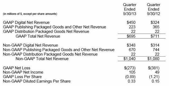 Americký vývojář videoher a počítačových her Electronic Arts vykázal za třetí čtvrtletí čistou ztrátu 273 milionů USD, respektive 0,89 USD na akcii (loni: ztráta 381 milionů USD). Upravený zisk na akcii však dosáhl 0,33 USD (loni: 0,15 USD, odhad: 0,12 USD) při tržbách 1,04 miliardy USD (loni: 1,08 miliardy USD, odhad: 975,7 milionu USD). Akcie Electronic Arts v after-marketu v reakci na výsledky rostly o více než 3 %.