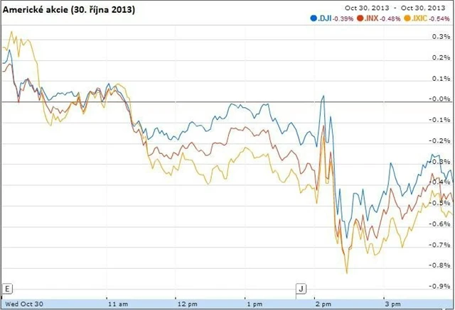 Americké akcie ve středu na nečinnost Fedu reagovaly oslabením a spadly z rekordních maxim