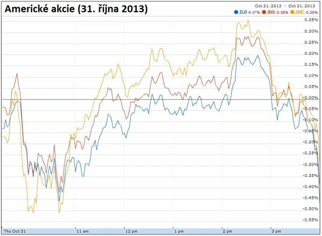 Za celý říjen nicméně všechny tři nejvýznamnější americké akciové indexy posílily. Dow si připsal 2,33 %, S&P 500 posílil o 3,62 % a Nasdaq zpevnil o 2,66 %.