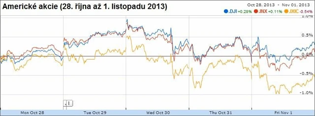Americké akciové trhy začaly páteční seanci po dvou dnech ztrát svižným růstem, v polovině obchodování ale počáteční zisky ztratily. Investory povzbudily k nákupům nečekaně příznivé údaje ze zpracovatelského sektoru ekonomiky, na trhu ale nadále panuje nejistota vyvolaná středečním vyjádřením americké centrální banky. V odpoledních hodinách se indexy ale opět vydaly vzhůru a zahájily listopad mírným posílením.