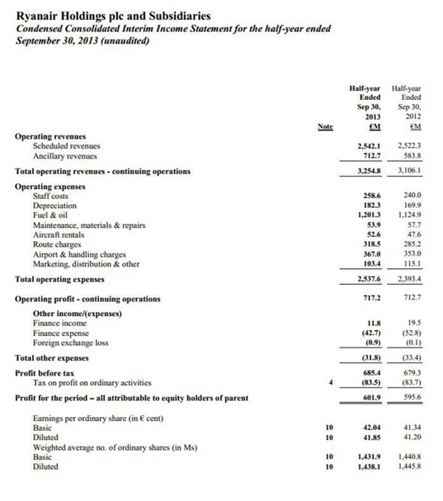 Zisk za prvních šest měsíců fiskálního roku se zvýšil o 1 % na 602 milionů eur, aerolinky za tu dobu přepravily 49 milionů lidí. Tržby vzrostly o 5 % na 3,26 miliardy eur.