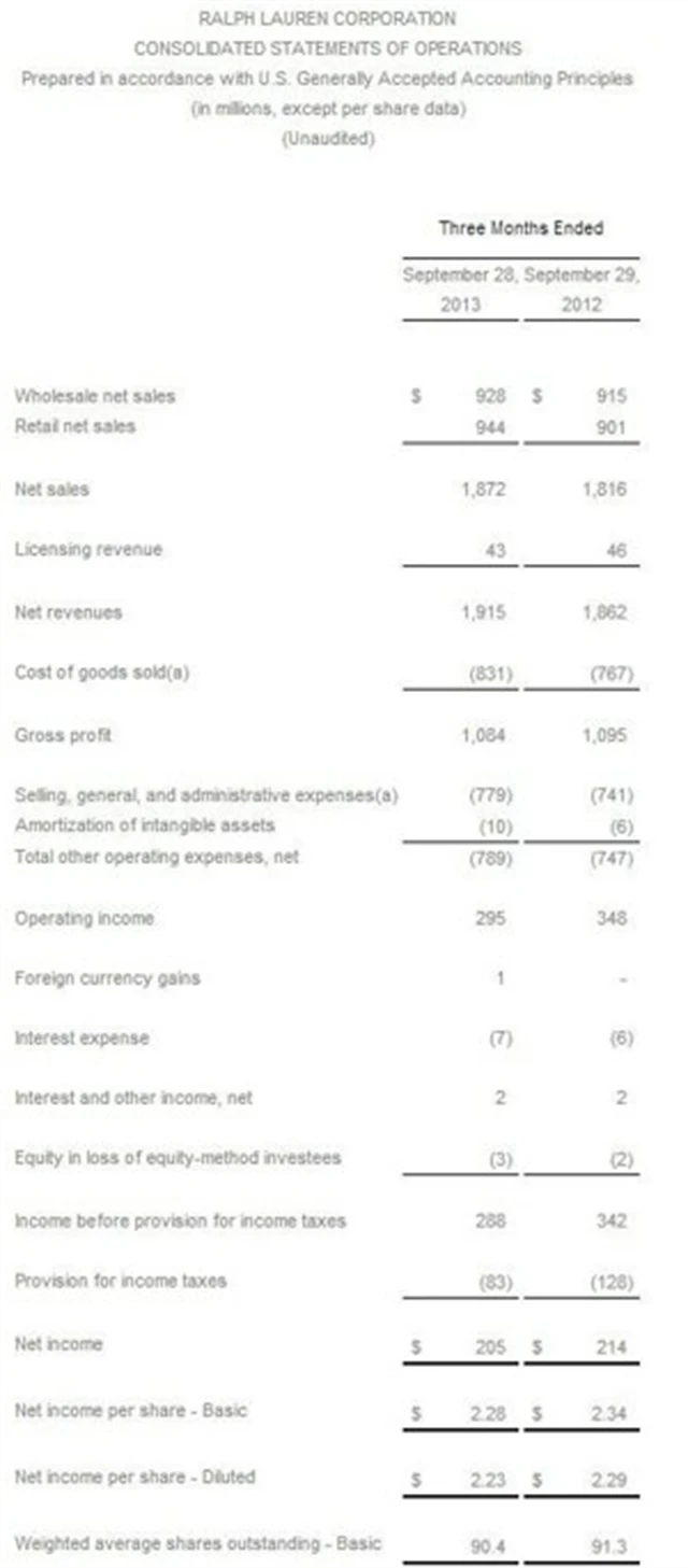 Výsledky společnosti Ralph Lauren v jejím druhém fiskálním čtvrtletí 2014 překonaly odhady. Firma navíc zvyšuje čtvrtletní dividendu o 12,5 % na 45 centů ze 40 centů. Tržby ve třetím kvartále podle vyjádření společnosti vzrostou o 8 - 10 %.