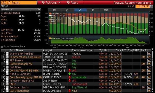 BRE Bank snižuje investiční doporučení na akcie ČEZ z "akumulovat" na "držet" Redakce IW8. 11. 2013 | 10:21ČEZZdroj: BloombergAkcie ČRČEZInvestiční doporučeníRedakce IW Další články autoraJak vydělat na jednorožcích dříve, než se na ně vrhnou investoři na burzeAkciový býk pádí vyspělými trhy. A není to jen americké témaTOP 10 článků týdne: Vize Nvidie, americké akcie a víra ve zlato DoporučujemeNestihli jste naskočit do zlaté rally? Vůbec není pozdě, říká stratégZlatoRychlé peníze ve velkém opustily zlato a stříbro. Trh se připravuje na další růstZlatoPříští vláda shrábne makroekonomický jackpotČeská ekonomika Aktualitydnes | 4:50Refinancujete hypotéku? Nový odhad ceny nemovitosti vám může výrazně snížit splátky6. 11. | 23:57Akcionáři Tesly schválili plán odměn pro Muska v hodnotě téměř bilionu dolarů6. 11. | 22:30Wall Street ve čtvrtek potopily obavy z vysokých valuací akcií, sestup vedly technologické tituly6. 11. | 18:00Evropské akciové trhy ve čtvrtek klesly, hlavní indexy odepsaly do 1,5 %6. 11. | 16:57Čínský startup Moonshot podporovaný Alibabou uvádí novou verzi svého AI modelu Kimi6. 11. | 16:45Pražská burza ve čtvrtek zpevnila, index PX znovu posunul maximum6. 11. | 16:29Akcie Snapchatu zpevnily o 15 % díky partnerství s Perplexity AI6. 11. | 16:06Akcie Duolinga zlevnily o 27 % kvůli slabému výhledu a důrazu na růst uživatelů6. 11. | 15:41Cathie Wood snížila odhad ceny bitcoinu kvůli rostoucímu vlivu stablecoinů6. 11. | 15:14Disney uzavírá partnerství s DraftKings pro sportovní sázení na ESPN6. 11. | 14:51Cena bitcoinu po výprodeji může jít ještě níž6. 11. | 14:36Americké akcie v úvodu: Dow +0,37 %, S&P 500 +0,48 %, Nasdaq Composite +0,65 %Zobrazit všechny aktuality Nejčtenější tento týden1.Nestihli jste naskočit do zlaté rally? Vůbec není pozdě, říká stratég2.Rychlé peníze ve velkém opustily zlato a stříbro. Trh se připravuje na další růst3.Příští vláda shrábne makroekonomický jackpot4.Dvě fakta o velkých akciových propadech, která vás možná překvapí5.Bank of America varuje: Americké akcie působí zdravě, ale trh uvnitř hnije6.Auto jako služba: Operativní leasing stále více láká domácnosti Sledujte násinvesticniweb.cz14000Investiční web19300LIVE2300Investiční web1000investicni_web500Investicniweb.cz33600