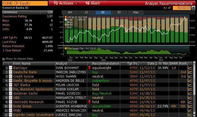 Barclays snižuje doporučení z "overweight" na "equalweight" na akcie Komerční banky Redakce IW12. 11. 2013 | 8:48Investiční doporučeníZdroj: BloombergPodívejte se na aktuální videoAkcie ČRInvestiční doporučeníKomerční bankaRedakce IW Další články autoraOčekávané výsledky světových firem v týdnu od 24. listopadu: HP, Best Buy, Kofola ČeskoSlovenskoRolls-Royce SMR postaví první tři malé modulární reaktory v britské jaderné lokalitě WylfaEBITDA Footshopu za prvních devět měsíců roku narostl o 21 % na 104 milionů Kč DoporučujemeBitcoin má za sebou stovky pohřbů, ale odmítá zůstat mrtvýBitcoinNervozita na Wall Street: Americké akcie zahajují čtvrtý rok býčího trendu učebnicově, situace připomíná rok 1998Americké akcieAI euforie žene index S&P 500 do extrémů. Bank of America radí, kam teď "schovat" penízeDiverzifikace investic Aktualitydnes | 17:04Finální index důvěry Michiganské univerzity vzrostl v listopadu na 51 bodůdnes | 16:54Předběžný kompozitní PMI USA mírně roste, táhnou ho službydnes | 16:41Eli Lilly jako první zdravotnická firma krátce vystoupala k tržní hodnotě 1 bilionu USDdnes | 16:20Bitcoin se propadl k 80 000 USD, trhy dál opouštějí riziková aktivadnes | 15:59Jefferson z Fedu: Segment AI je stabilnější než technologické tituly z konce 90. letdnes | 15:47Americké akcie v úvodu: Dow +0,14 %, S&P 500 +0,22 %, Nasdaq Composite +0,18 %dnes | 15:33Robinhood prohlubuje ztráty, dopadá na něj slabší zájem o kryptoměny a AI titulydnes | 15:10China International Development zvažuje nákup polovodičové firmy Lonten Semiconductordnes | 14:48Prezident newyorského Fedu Williams vidí prostor pro další úpravu sazebdnes | 14:13Google: Poptávka po AI vyžaduje výrazné zrychlení budování výpočetní kapacitydnes | 13:56Propouštění v Amazonu zasáhlo hlavně inženýry, ukazují státní datadnes | 13:42Japonsko schválilo balíček ve výši 135 miliard USD na podporu ekonomikyZobrazit všechny aktuality