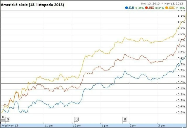 Americké akcie se ve středu po úterních ztrátách vyšplhaly do plusu. Index S&P 500 posunul zavírací maximum na 1 782 bodů, stejně jako Dow, jehož nový zavírací rekord je na 15 821,63 bodu.