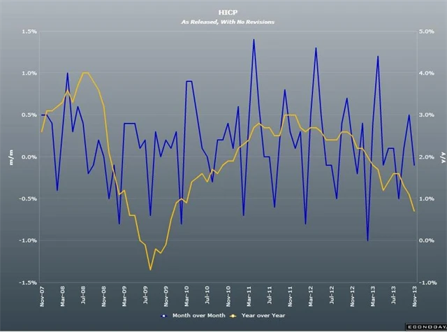 Výrazný propad inflace v eurozóně vedl před týdnem Evropskou centrální banku k rozhodnutí překvapivě snížit své základní úrokové sazby o čtvrtinu procentního bodu na nové minimum 0,25 %. Její šéf Mario Draghi navíc řekl, že ECB bude minimálně do poloviny roku 2015 pokračovat v nabídce neomezeného objemu levných úvěrů komerčním bankám.