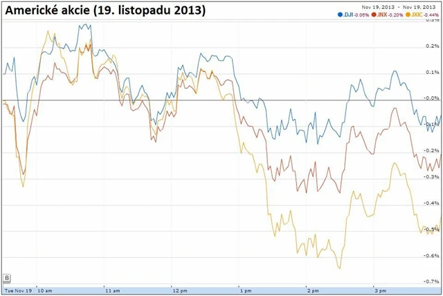 Dow oslabil o 0,06 % na 15 967,03 bodu, širší S&P 500 odepsal 0,20 % na 1 787,87 bodu a technologický Nasdaq klesl o 0,44 % na 3 931,55 bodu. Nejvíce oslabily sektor služeb a tituly ze sektoru cyklického spotřebního zboží. Mírně v plusu naopak uzavřel sektor zdravotnictví.